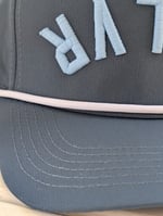 Navy Blue, Baby Blue Letters in Raised Stitch, White Rope, Snap Back